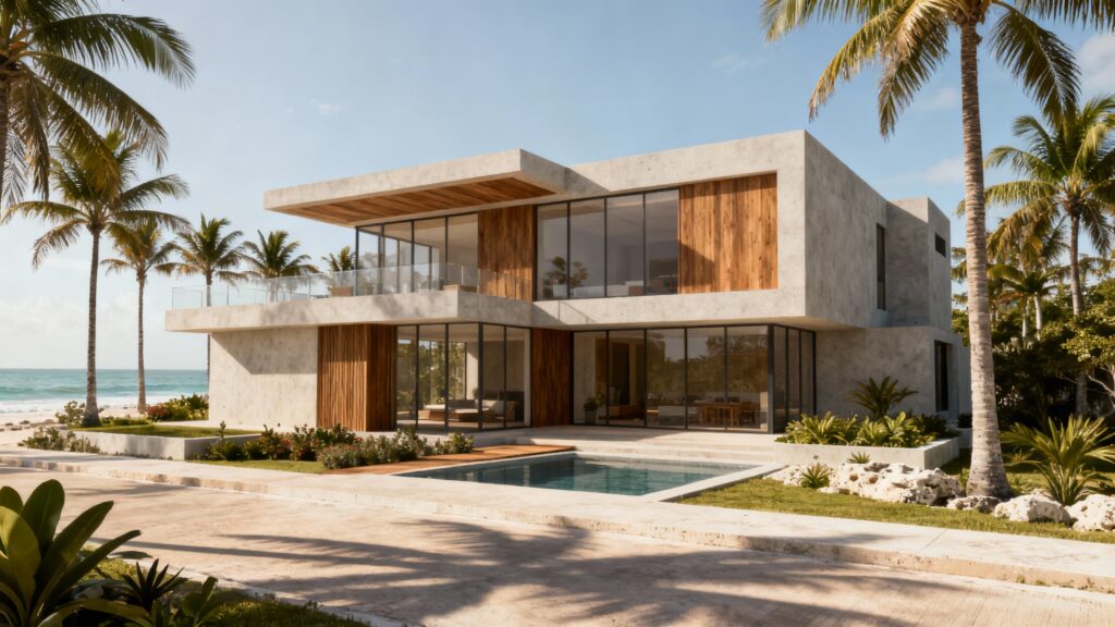 5. Choose the right materials: Coastal Mexico demands salt-resistant construction — reinforced concrete, PVC windows, and marine-grade finishes.